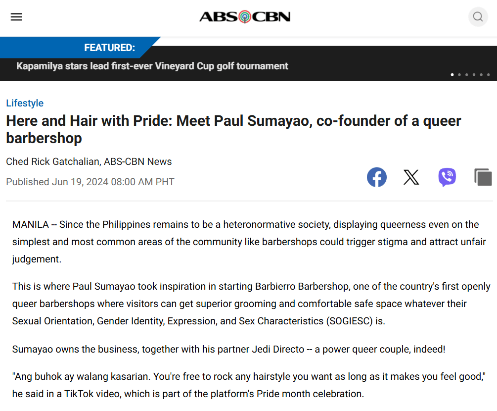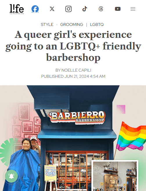 having a barbershop na ang branding ay for queer ppl is actly progressive and even affirming most especially for trans masc/trans men, non binary, and even gender non conforming ppl !! 😭