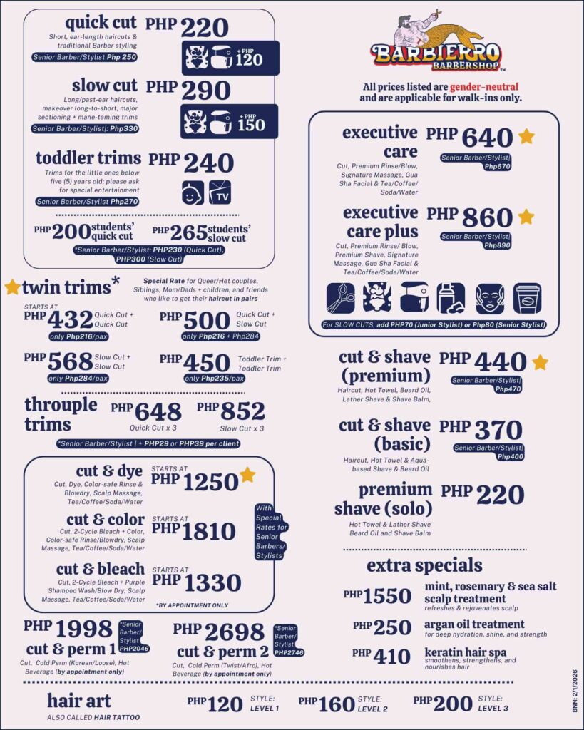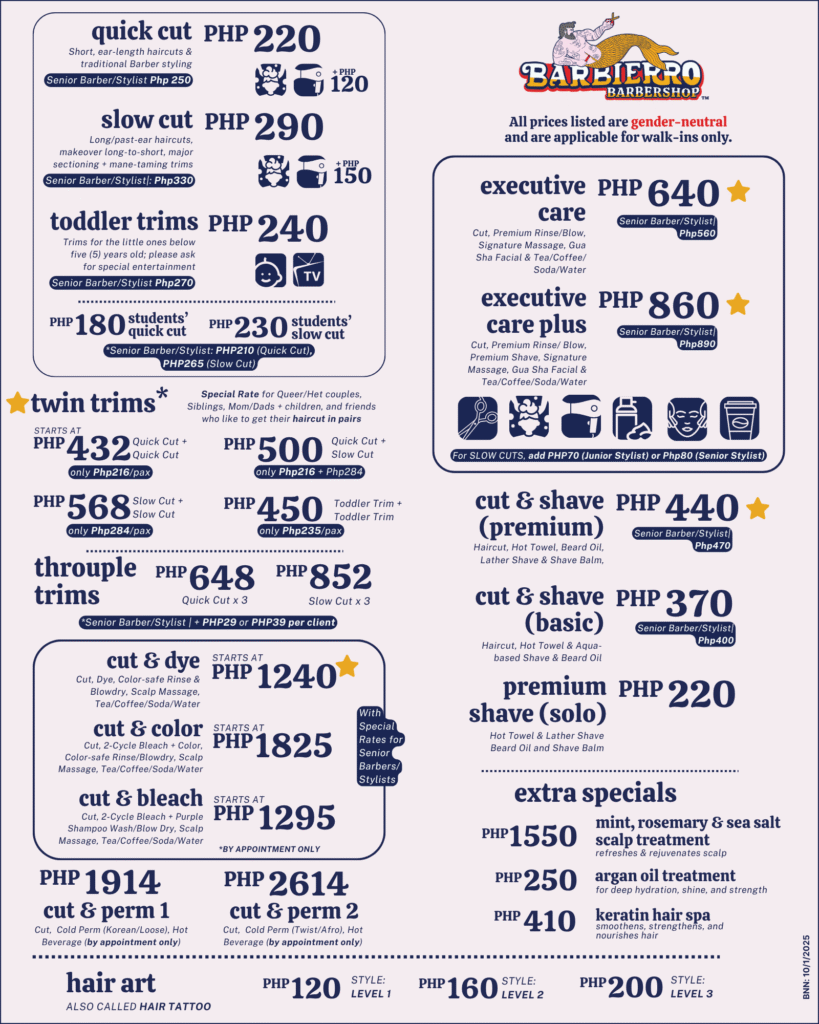 Price List - Barbierro Barbershop Biñan City, Laguna